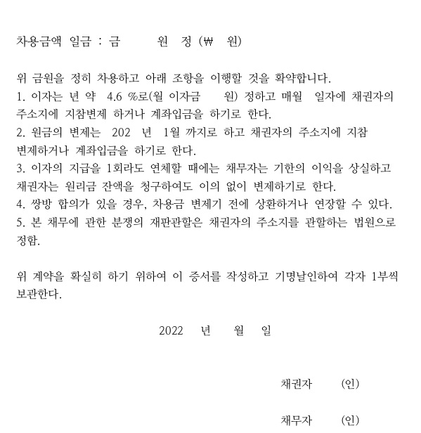 1. 차용증 서식 내용