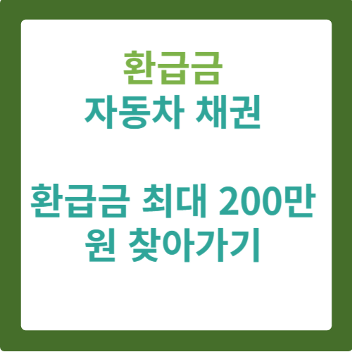 자동차 환급금 신청은 자동차를 구매할 때 채권이 만기가 되어 이자와 채권 만기금을 돌려주는 제도입니다. 차량 구입 시 번호판 받으면서 취등록세와 채권을 냅니다.