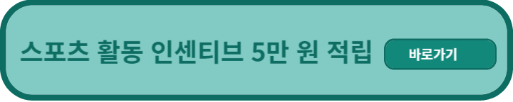 전국민 운동지원금 5만 원을 지원하고 있으며 전국민 운동지원금 적립 기준에 따라 인센티브를 주고 있습니다. 건강도 챙기고 용돈도 적립하세요.