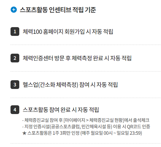 안내 4단계의 신청 절차가 있습니다. 스포츠 활동 인센티브라는 이름으로 적립됩니다.