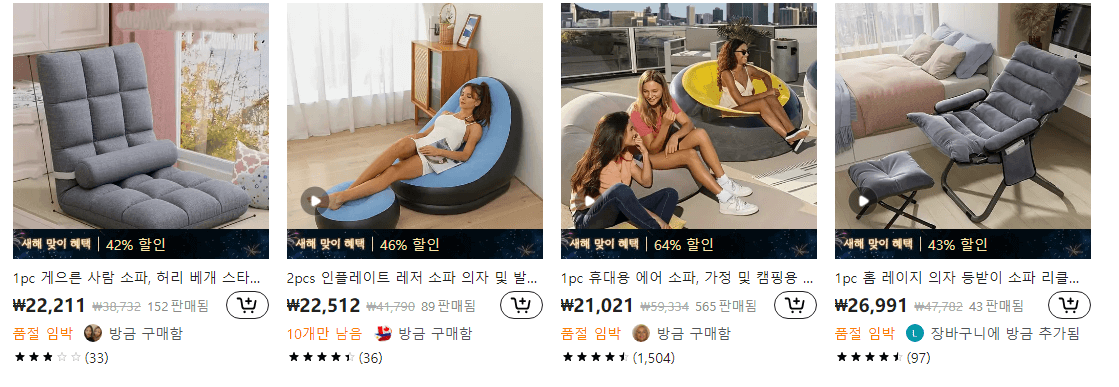 특히 개인적으로 조명등을 좋아하는데, 조명등이 1만 원 내외입니다. 1인 소파도 2만 원 내외로 구입할 수 있네요. 중국에서 제조한 제품을 반 값에 구매할 수 있는 장점이 있습니다. 정말 저렴한 가격입니다.